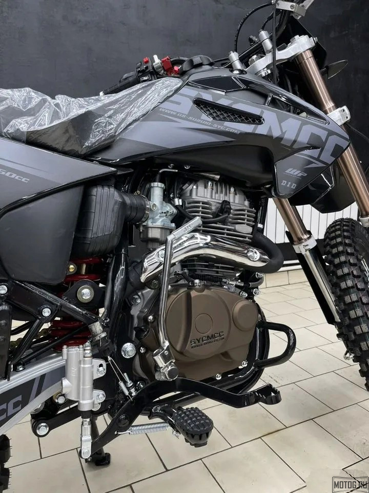 ✅ Воздушное охлаждение, механическая коробка передач (5-ступенчатая), карбюратор PZ30, алюминиевые спицованные диски, колёса 21/18 дюймов и усиленная прогрессия подвески делают SYCMCC 250 универсальным решением как для кроссовых трасс, так и для тяжёлого бездорожья.